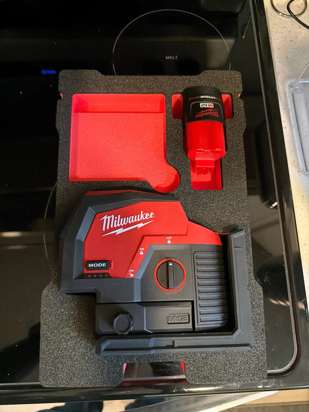 FOAM INSERT to store M12 Green 125ft Laser 3622-20 in a Milwaukee Packout 5 Compartment Small Parts Organizer - Tools/Case NOT Included - Target + XC Battery is backordered and will ship as soon as it is back in stock.