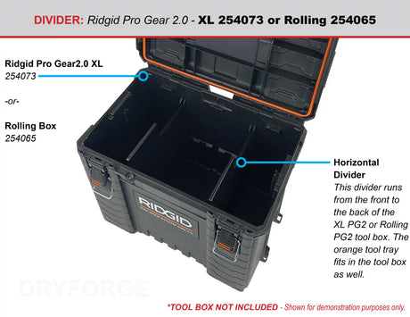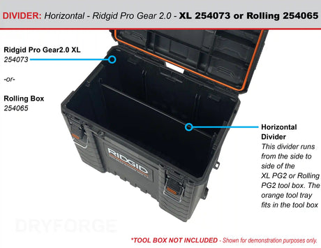 Horizontal Divider for Ridgid Pro Gear 2.0 XL or Rolling Tool Box - Tools/Case NOT Included